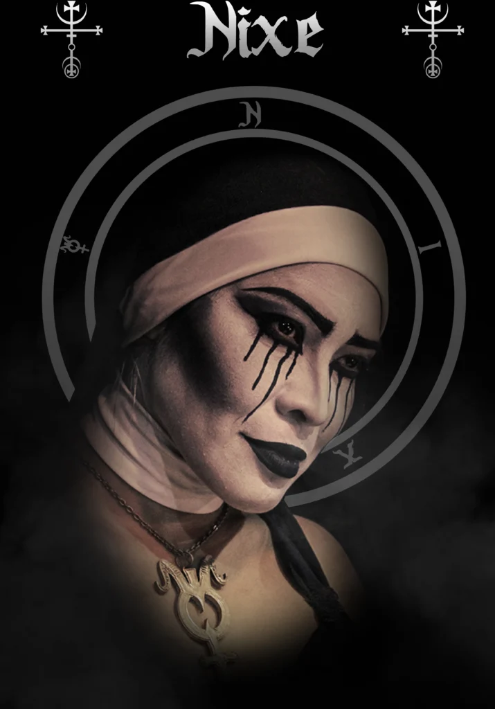 Nuns follow a god. They live without enjoyment and claim to abstain from sexual encounters. We subvert the iconography of nuns because they represent the exact opposite of what we preach. They are not free. Like many characters in the human race, they deprive themselves of the richness of a full life.